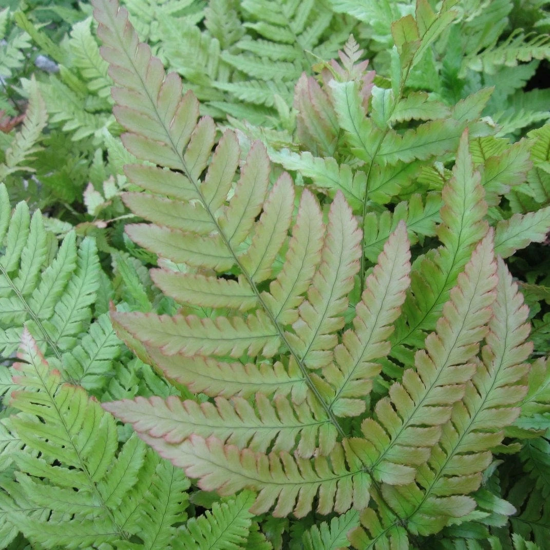- In spring, the new fronds have a coppery tint, which contrasts beautifully with the green of the mature fronds. These turn green as the season progresses